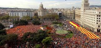 Manifestación catalanista en la Plaza de Cataluña.